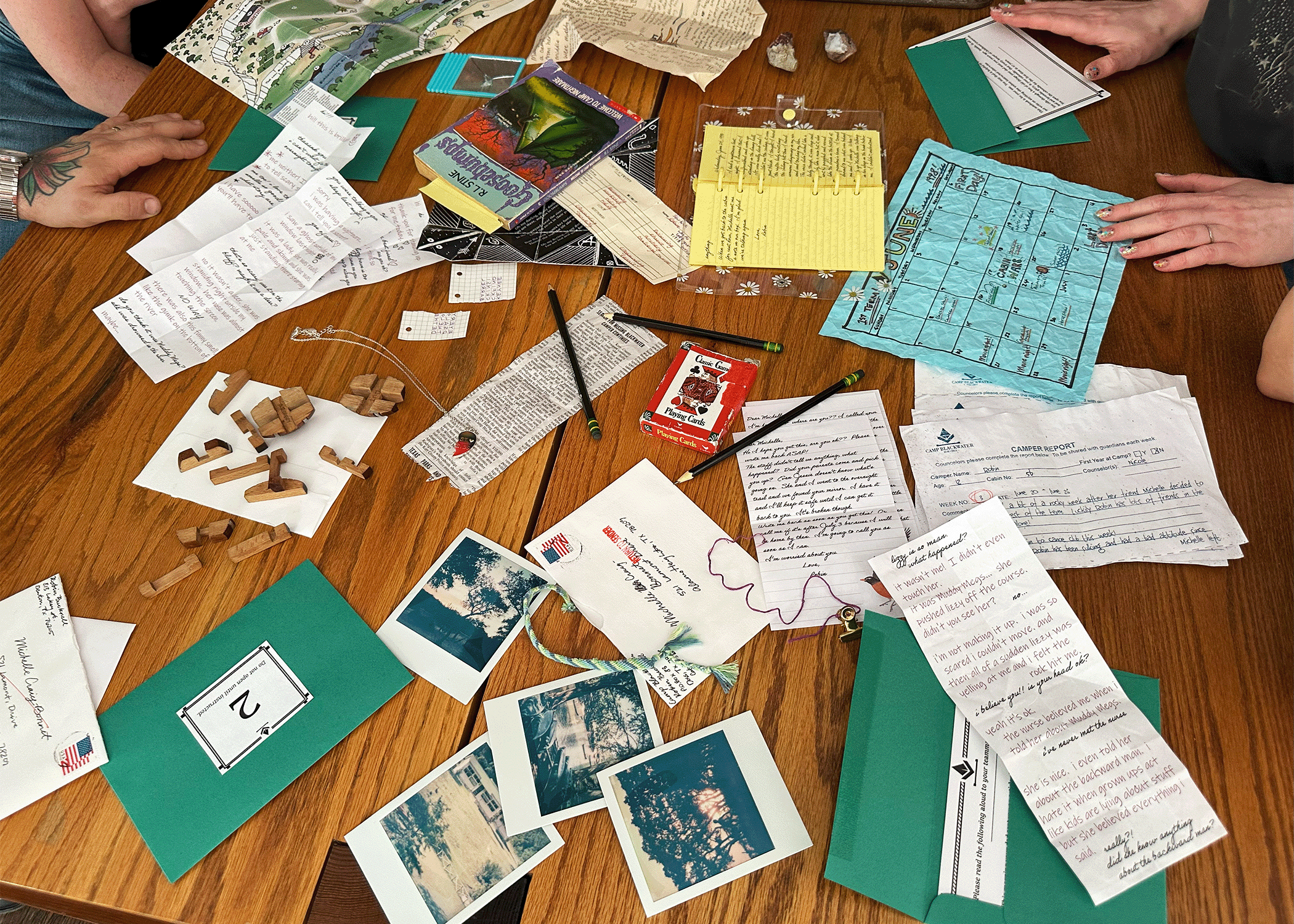 Ashes Ashes is a collaborative tabletop mystery told through a collection of childhood treasures. Players have one hour to piece together a fractured story of summer camp hauntings and a friend who went missing nearly thirty years ago. The game includes a vintage Caboodle full of handmade props, a mysterious locked box, and an accompanying radio broadcast.